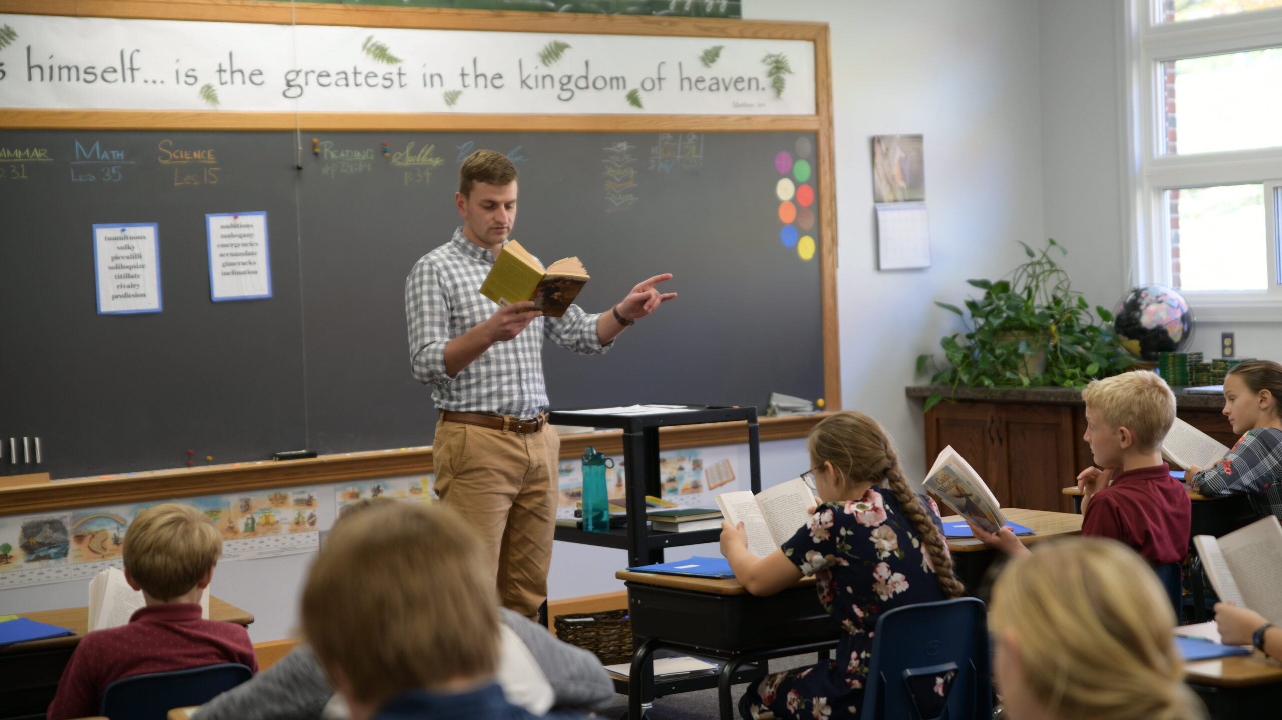 Recently I enjoyed the opportunity to visit another school while classes were in session. I visited various classrooms and was able to observe a slice of the daily life of a school somewhat like my own. This school moved into a new building only a few years ago, and the whole place is modern, efficient, and beautiful. Things appear to run like a well-oiled machine. I watched a friend of mine teach her class of fourteen in a spacious, sunlit room considerably larger than my own little basement room where twenty-two students are stuffed into a space that might be ideal for a dozen or so. You can probably imagine some of the thoughts that were running through my head.