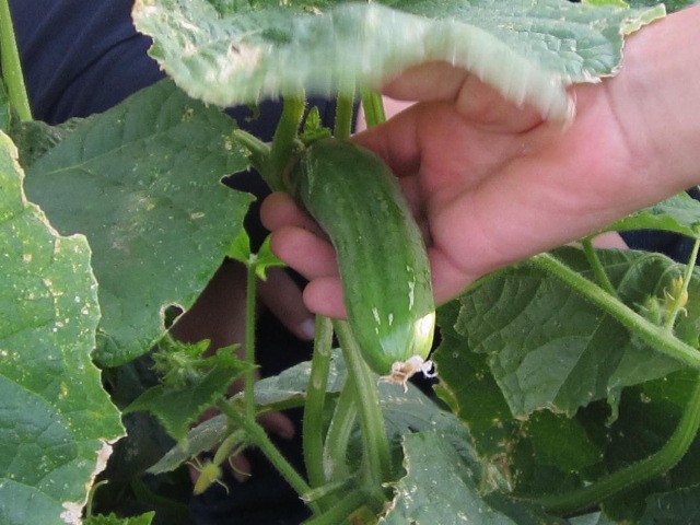 Every school day since August 18, third and fourth grade students eagerly pick fresh, crisp cucumbers and immediately eat them, breaking them in half to share around. On the other end of the plot, cherry tomatoes are ripening while sweet potato plants secretly hide their treasures under the ground.