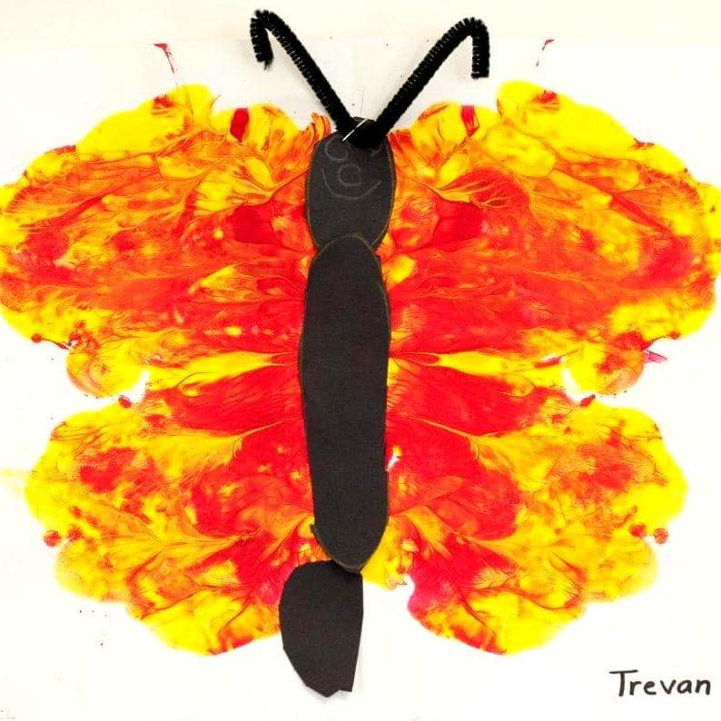 This is a lesson plan for an elementary art lesson in which students combine two primary colors to create a three-colored, symmetrical butterfly.