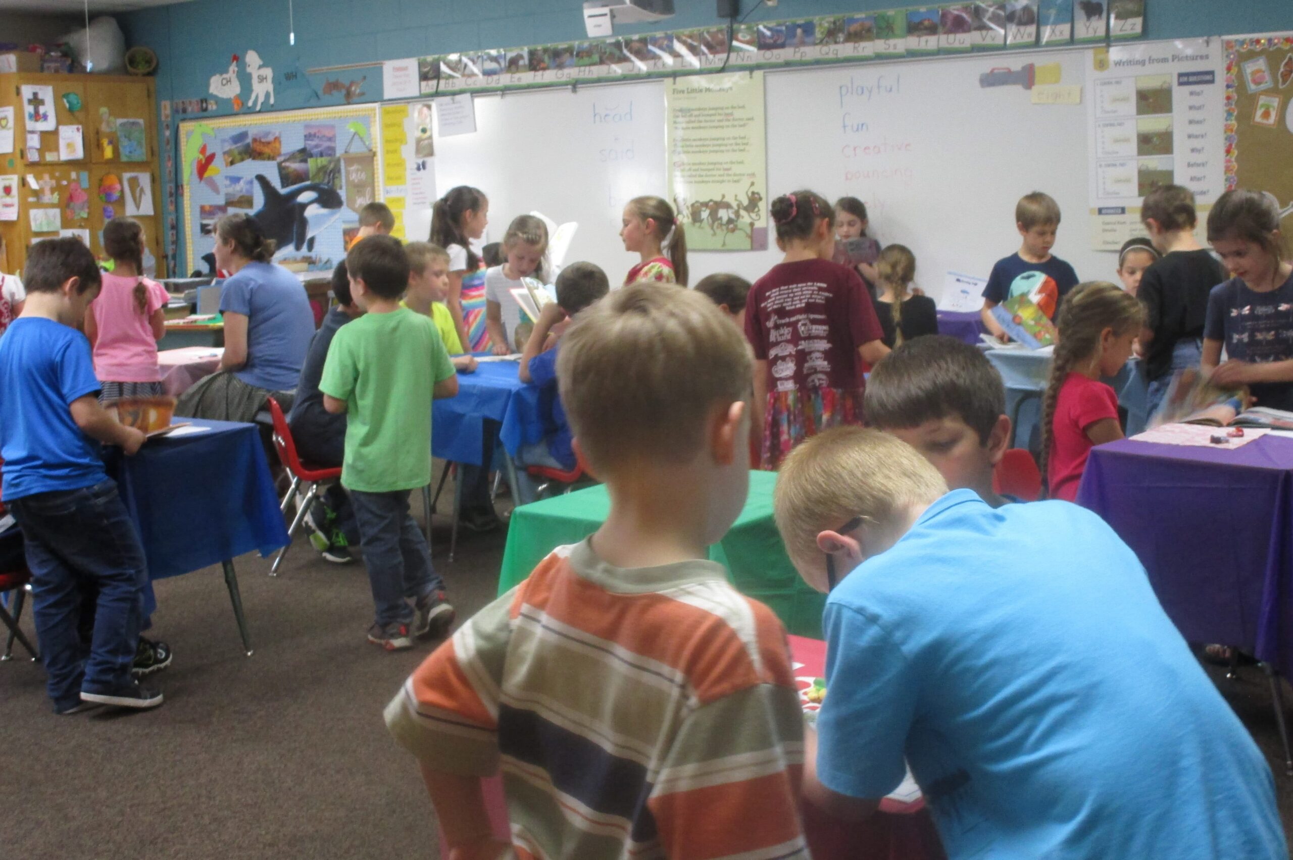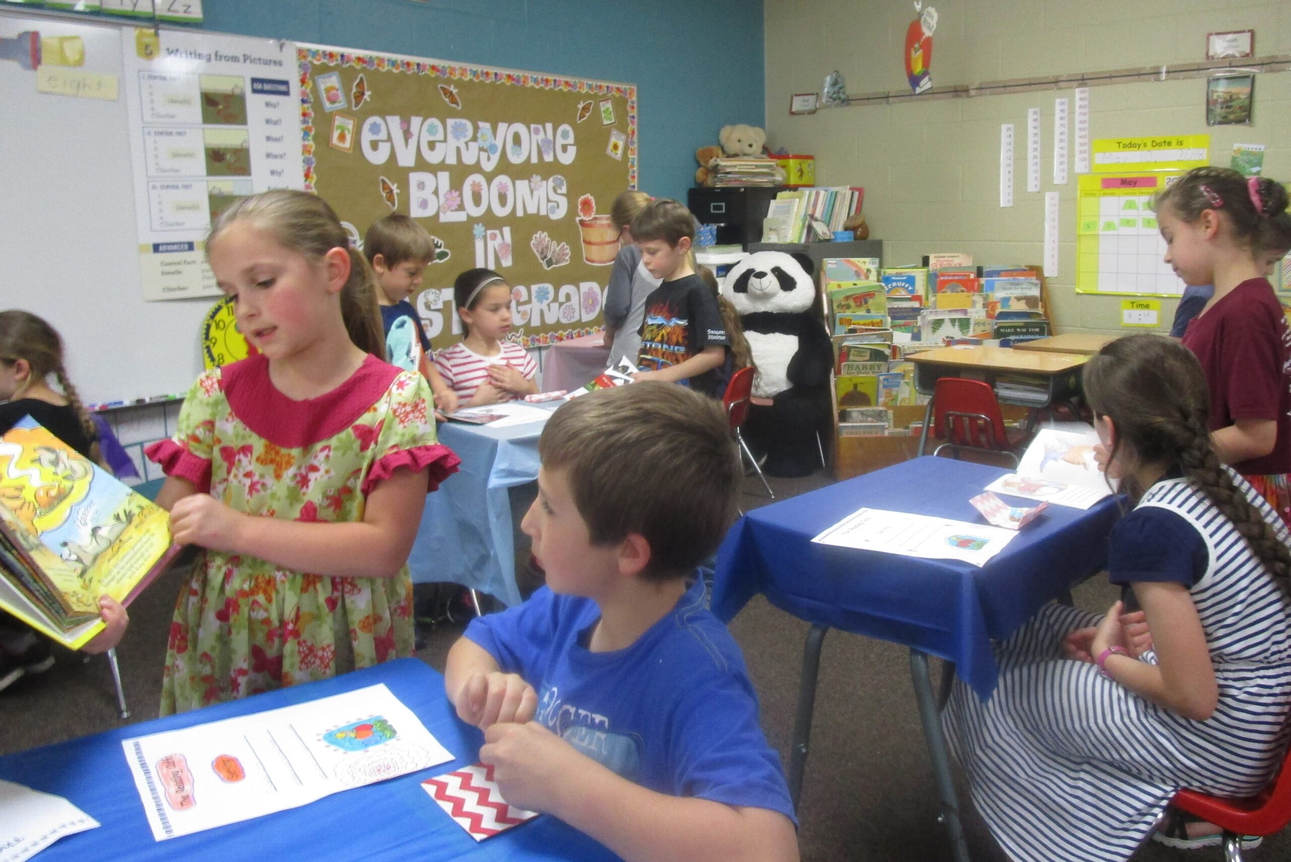 I enjoyed watching the interactions of the two classes, and seeing how the third graders acted so “grown-up” and listened to the first-graders reading. I also enjoyed seeing the first-graders reading well and serving their guests. It was exciting to look across the classroom, at all the colorful tables, and see my students reading nicely, and “serving” stories the third-graders. We were honored to have our administrator attend, and the two children who were serving him were delighted to welcome him, take him to their table, and read to him. We were also pleased to have two board members, at school for a meeting, attend after their meeting was over.