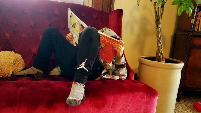 Again, we do not require involvement. But books are always lying around our house. At any moment, someone is usually sprawled on the couch, lost in the pages. Dad or Mom sits down for story time, and invites each kiddo to bring two books.