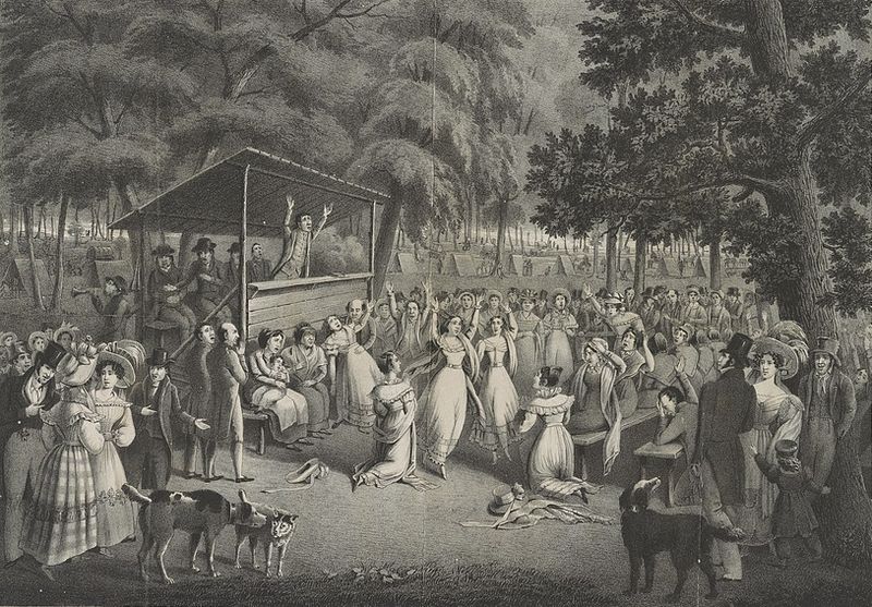 An early 19th-century camp meeting
