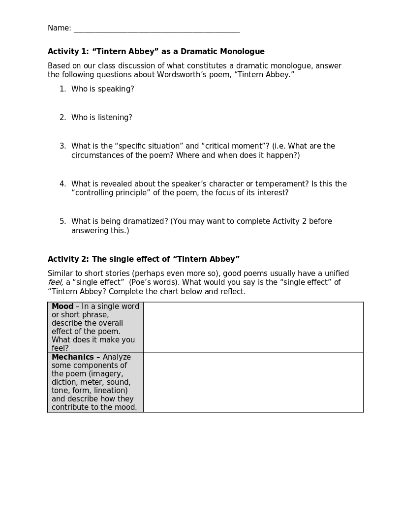 This assignment requires students to compose a creative response to a poem from the Romantic Age of English literature. Includes assignment description and grading rubric.
