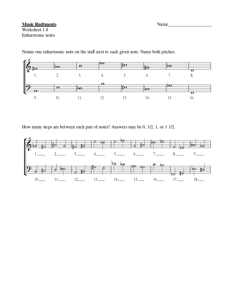 Worksheet 1.8 Enharmonic Notes