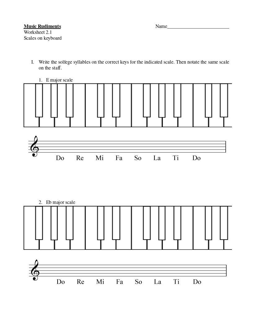 Worksheet 2.1 Scales on Keyboard