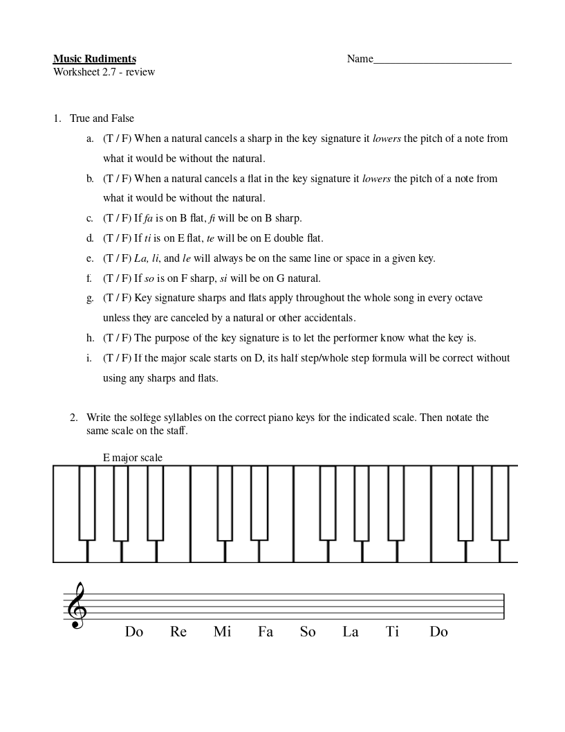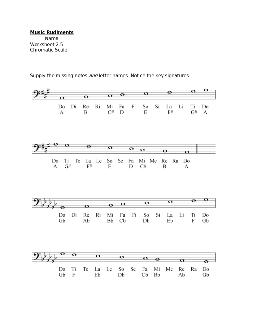 Worksheet 2.6 Chromatic Scale Solfege