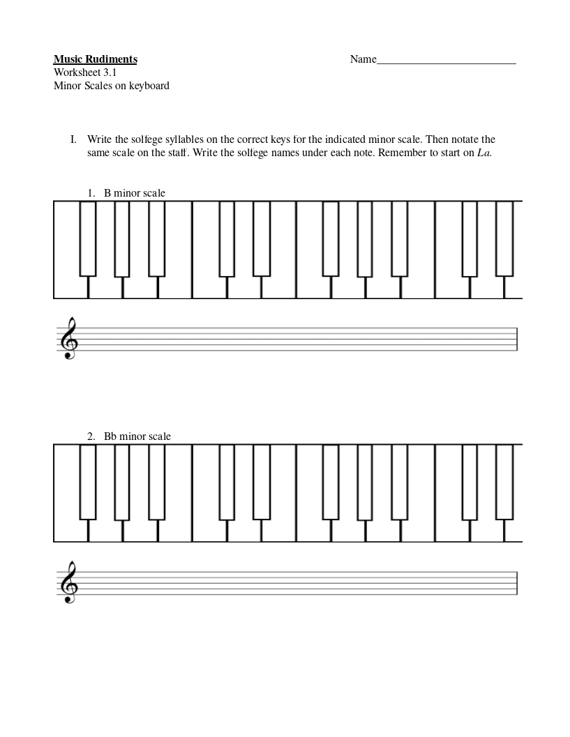 Worksheet 3.1 Minor Scales on Keyboard