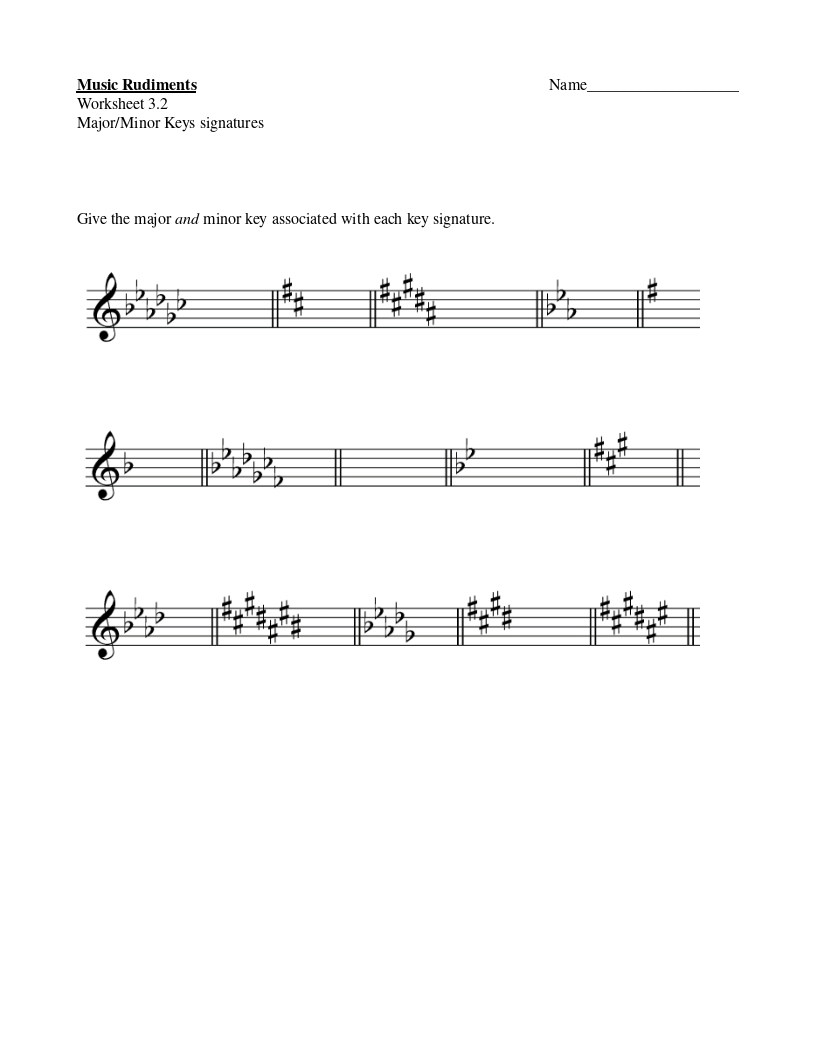 Worksheet 3.2 Major and Minor Keys