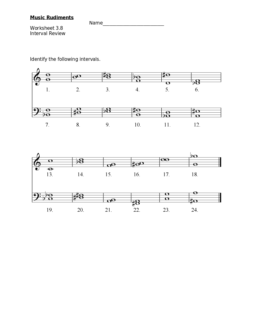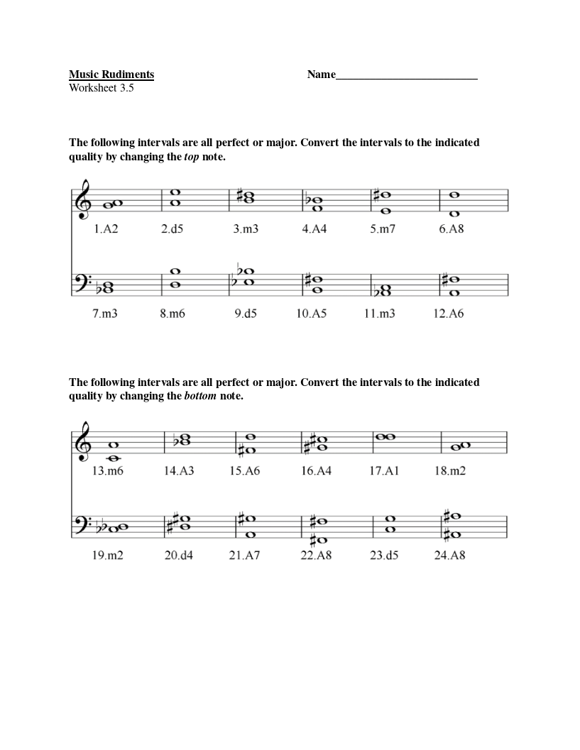 Worksheet 3.6 Perfect Intervals