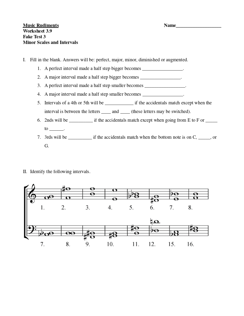 Worksheet 3.9 Minor Scales and Intervals