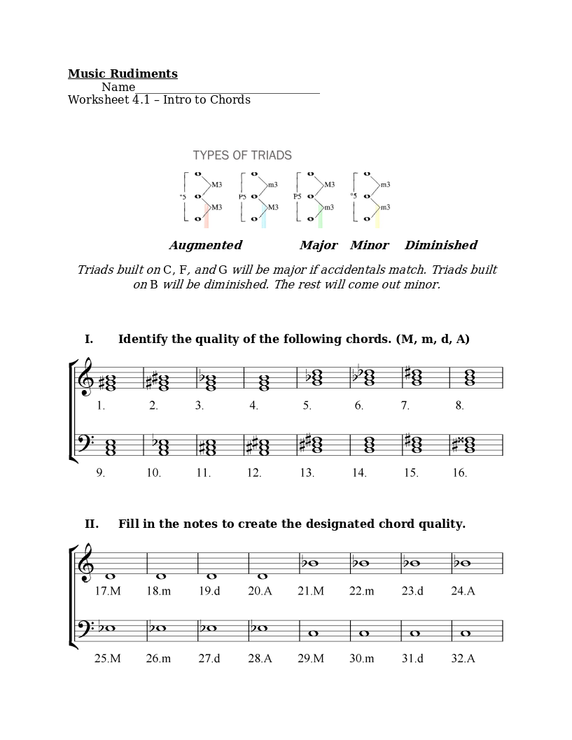 Worksheet 4.1 Intro to Chords