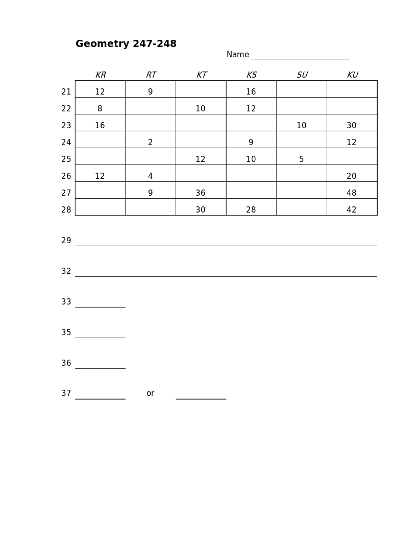 Worksheet for Page 247 - Geometry by Ray C. Jurgenson