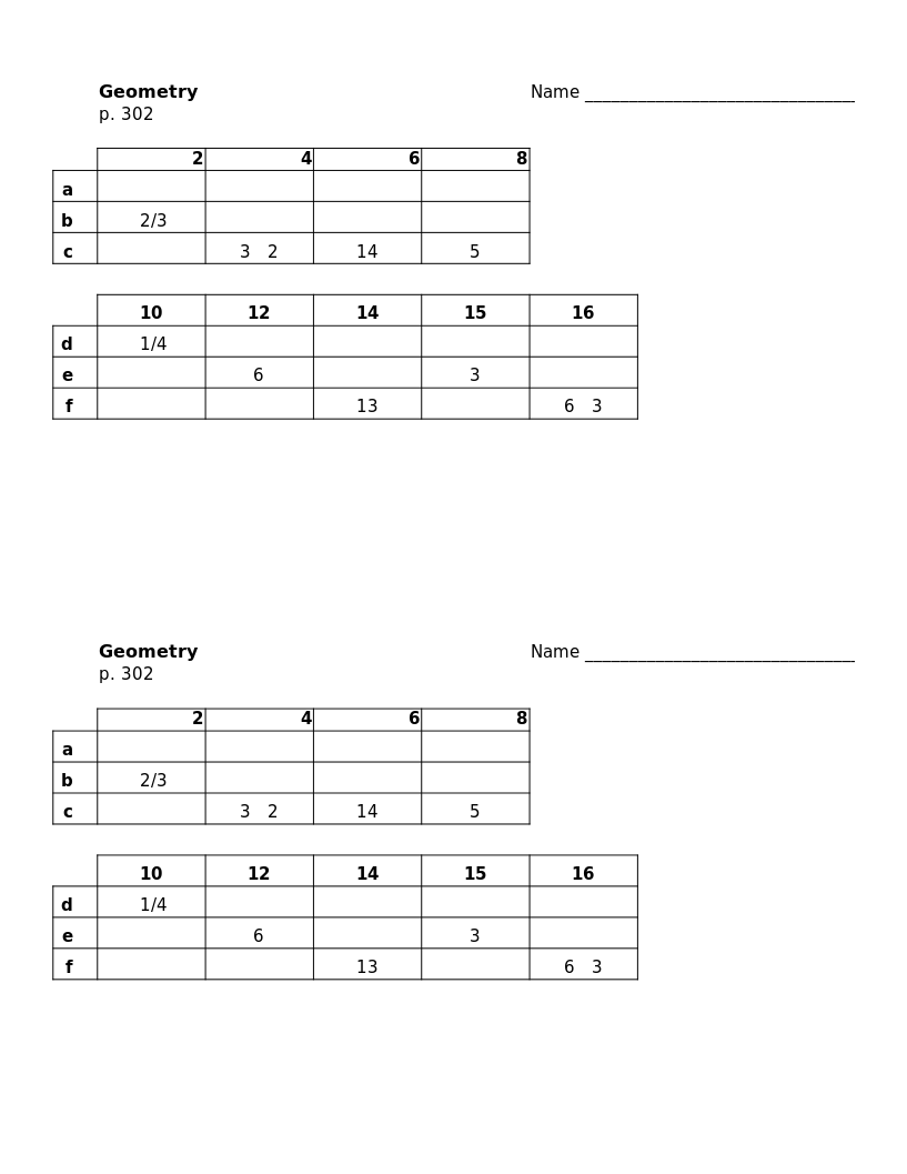 Worksheet for Page 302 - Geometry by Ray C. Jurgenson
