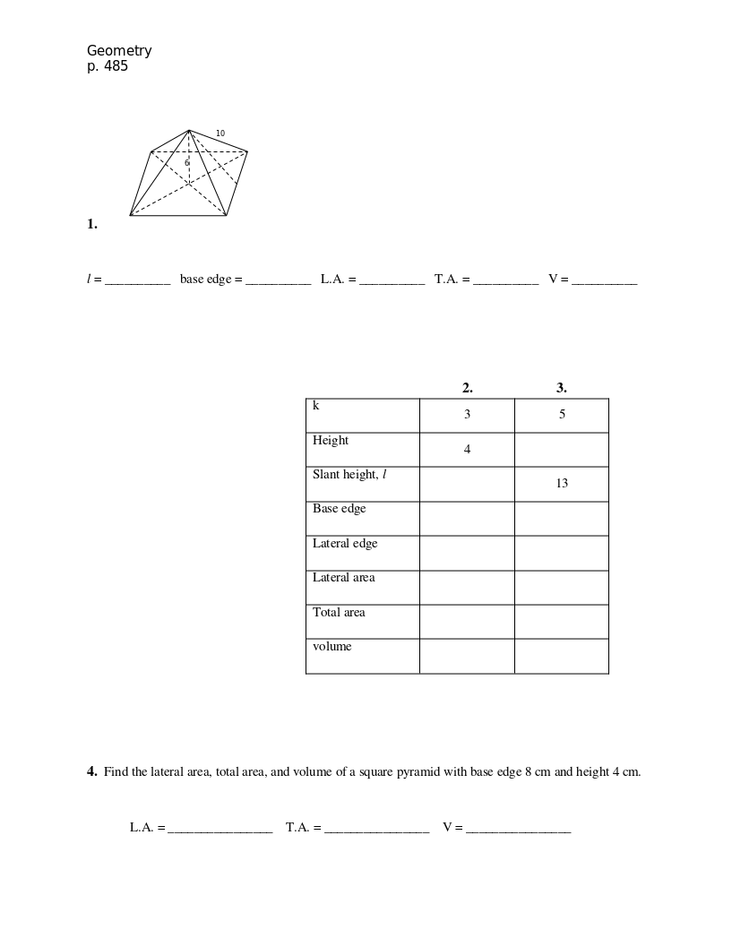 Worksheet for Page 485 - Geometry by Ray C. Jurgenson