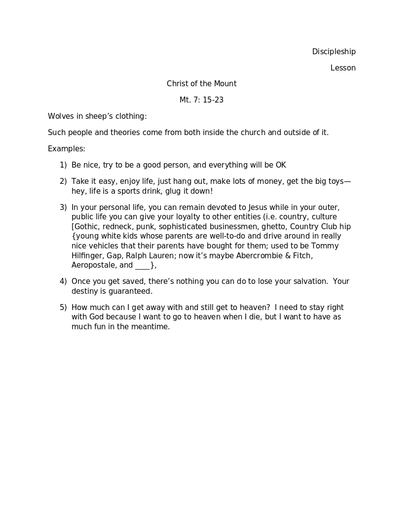 Mt. 7. 15-23, Wolves in Sheep's Clothing