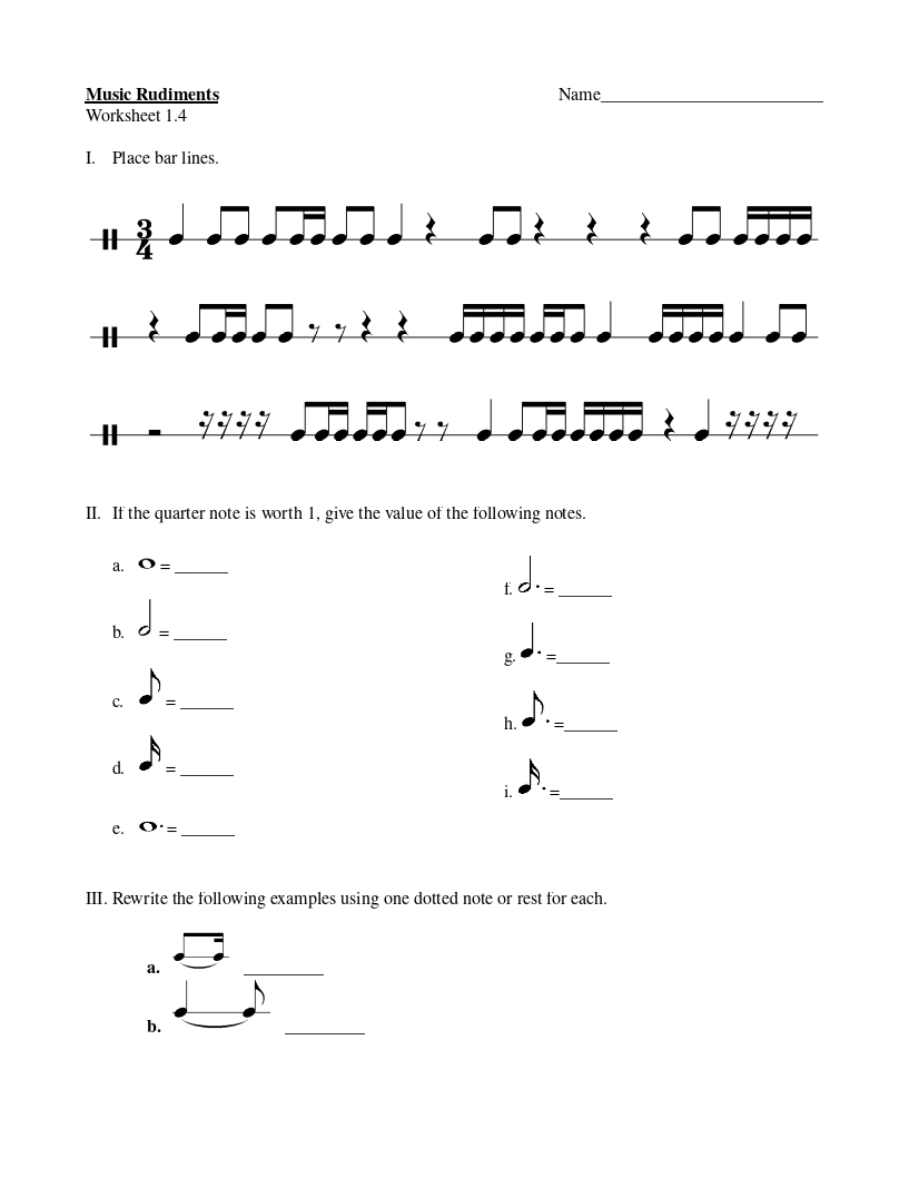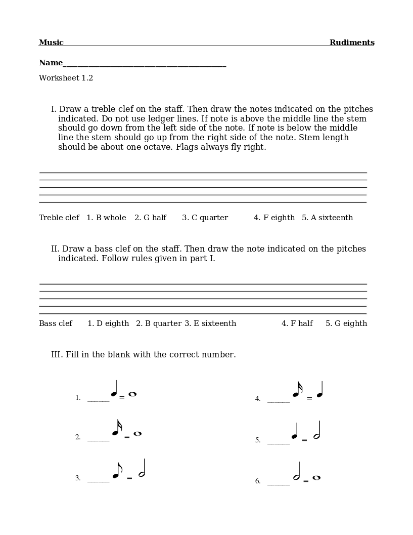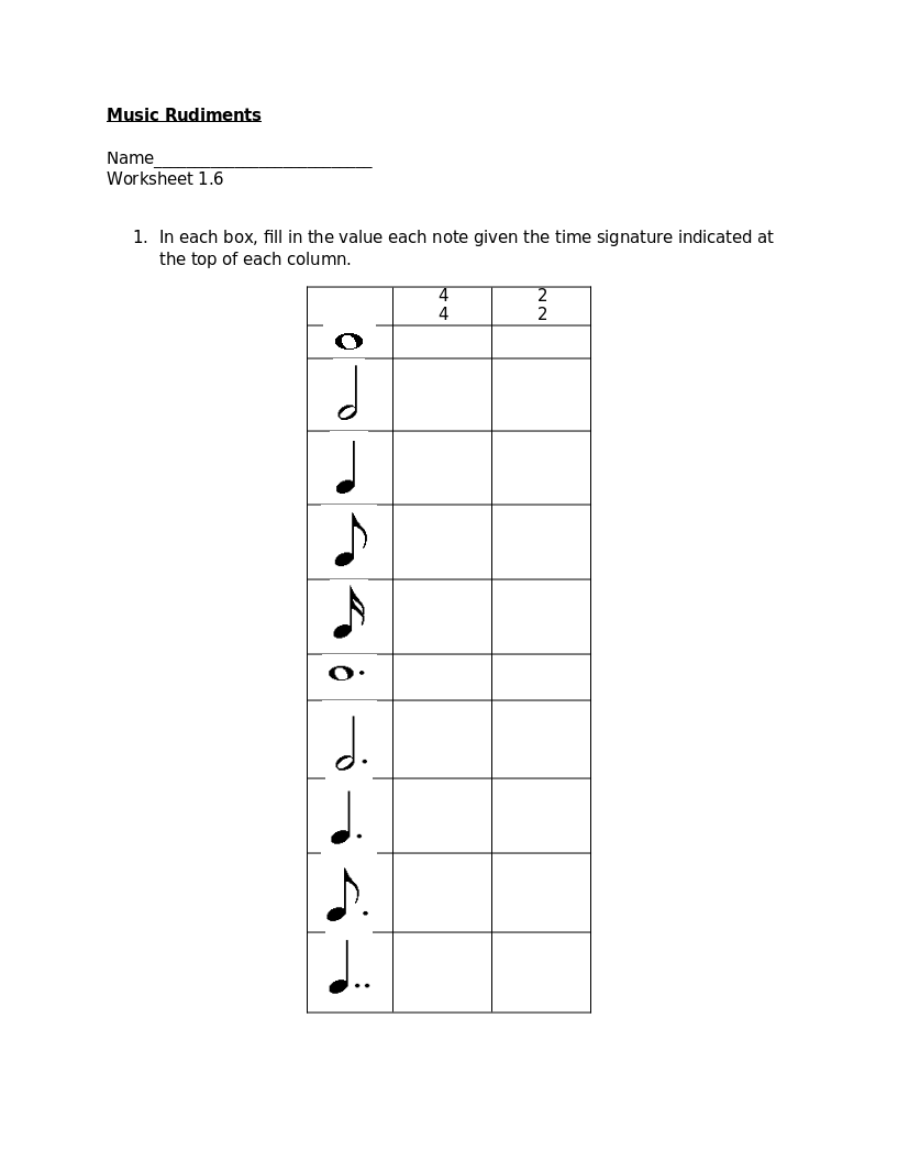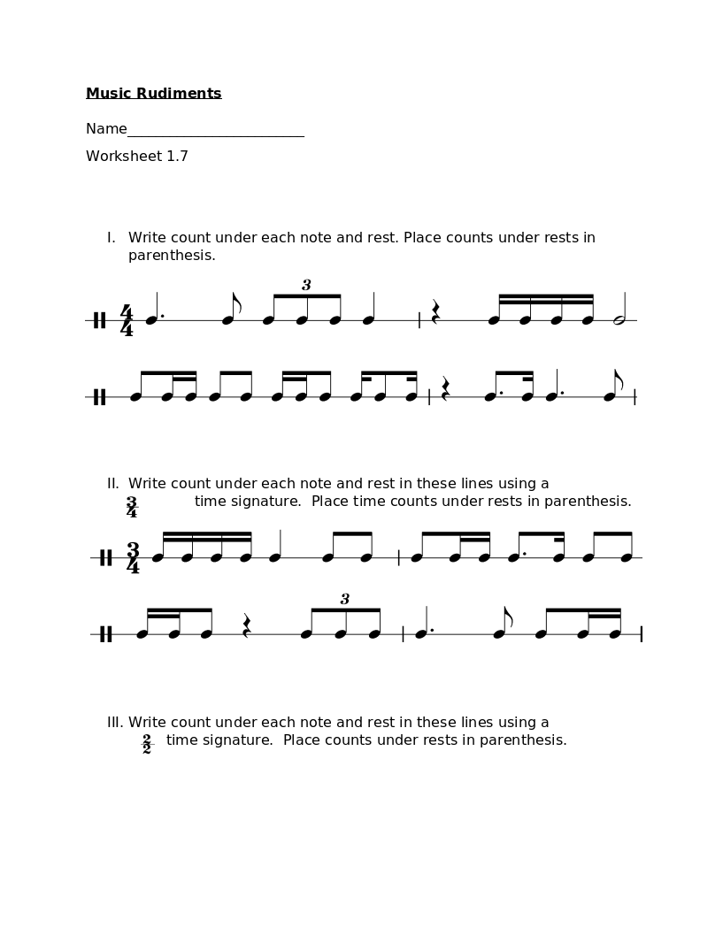 Worksheet 1.7 Counting Triplets and Duple Meter